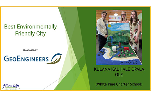 In addition to an overall Future City winner, special awards were given in different categories. GeoEngineers sponsored the award for “Best Environmentally Friendly City,” and Kevin helped select the winner. As a judge, he spent time with each team, asking questions and listening to their responses.