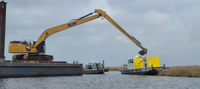 Marsh fill placement was completed in 2025, and the restored landscape is already enhancing the region’s resilience to storms. While newly created marsh may initially appear waterlogged, the dredged material is designed to dry and consolidate over time, forming stable soils capable of supporting robust, vegetated marshland—far more resilient to storm surge than fragmented or degraded marsh systems.