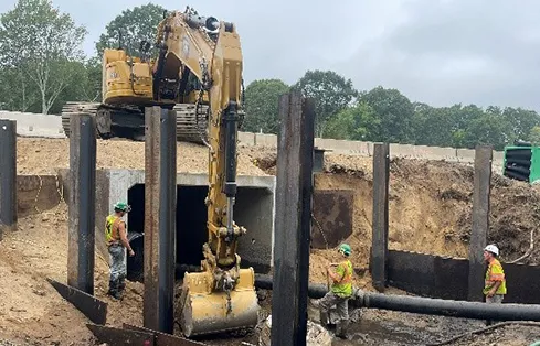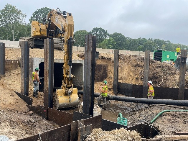 GeoEngineers’ Construction Design team partnered with K2 Infrastructure Group to design SOE, dewatering, and water handling systems for multiple excavation sites at the I-95 Interchange 74 Improvements and Bridge No. 00250 Replacement project in East Lyme, Connecticut. The project involved constructing new retaining walls, culverts, and bridges to reconfigure Interchange 74 of I-95. GeoEngineers’ designs ensured safe, efficient excavation and water management throughout the complex highway and bridge construction.