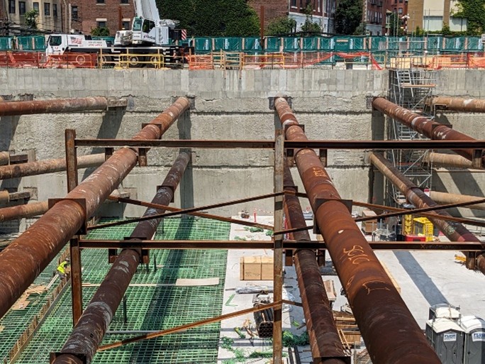 • Configured bracing to avoid proposed elevator shafts and shear walls and phased excavation to maintain access for adjacent property deliveries.