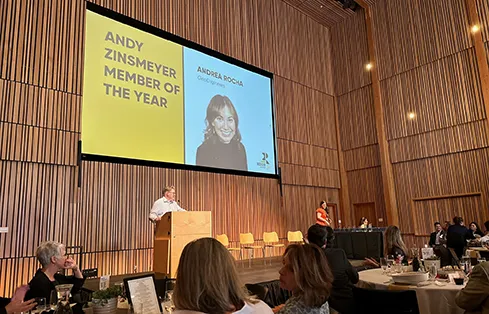 SMPS recognized Andrea’s ongoing contributions with the Andy Zinsmeyer Member of the Year award at the chapter’s Reign Awards on June 12. Colleagues April Smith and Lisa Bona were on hand to celebrate with Andrea—and the award’s namesake Andy Zinsmeyer, the society’s first member, treasurer, and executive director (1976—79) made a special appearance!